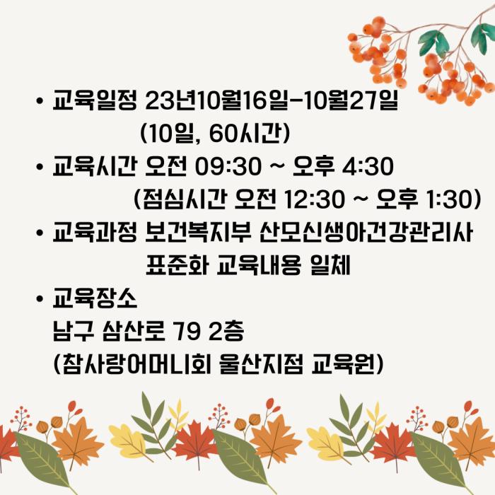 울산 산모신생아건강관리사 양성 교육